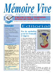 Chaque trimestre le CDHA Centre de Documentation Historique sur l'Algérie. Edite un Magazine Mémoire Vive. Directeur de la publication : Gérard Cénac. Comité de rédaction: John Franklin, Elisabeth Cazenave, Georges Hirtz. Au prix de 3,74 €. Comment adhérer au CDHA. CHARGER LE BULLETIN D'ADHESION Charger le bulletin d'adhésion au format Acrobat Reader, et l'adresser par courrier au : Centre de Documentation Historique sur l'Algérie. Maison du Maréchal Juin. 29 Av. de Tubingen 13090 Aix-en-Provence. Téléphone : 04.42.52.32.89. Télécopie : 04.42.59.41.08. |