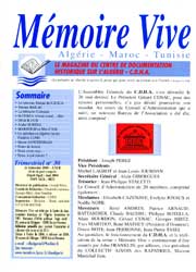 Mémoire Vive est édité par le Centre de documentation historique sur l’Algérie. Association loi 1901. Reconnue d’Utilité publique. Siège social : 29, avenue de Tübingen - 13090 Aix-en-Provence. Adhésion annuelle pour soutenir l’association et s’abonner à la revue est de 20 Euros . Chèque à l’ordre du CDHA, à adresser au CDHA. 29 avenue de Tübingen. 13090 Aix-en-Provence. e-mail : cdhalgerie@9online.fr
