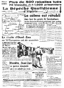 La révolte de d'Oued Zem Maroc La Dépêche Quotidienne d'Algérie du 21 et 22 Août 1955