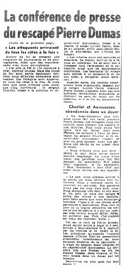 venu me chercher. Voilà " Tel est le récit de Pierre Dumas