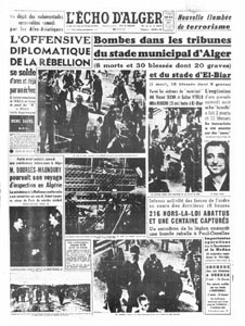 Bombes dans les tribunes du stade municipal d'Alger et au stade d'El-Biar.