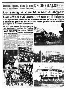 Semaine des barricades à Alger (vingt deux morts, cent cinquante blessés le premier jour)