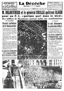 Barricades Delouvrier et Challe quittent Alger, Le Pen arrêté , les territoriaux enfermés dans les facultés attendent le discours du général De Gaulle.