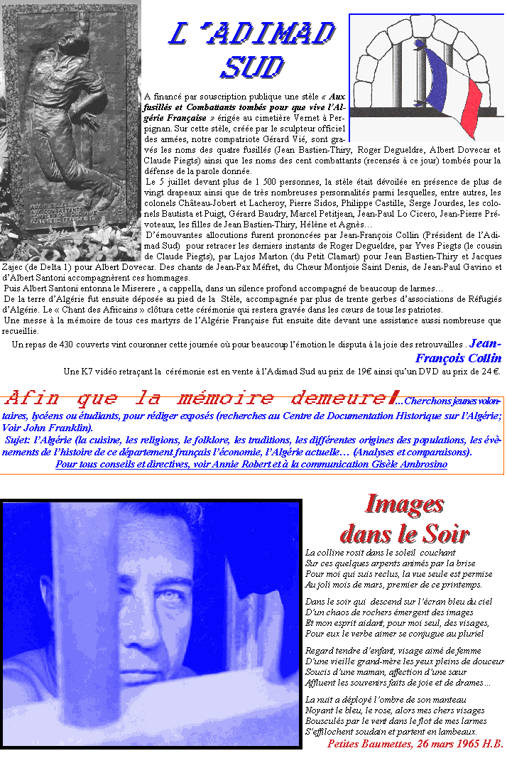 en vente à l'ADIMAD-Sud. Images dans le soir un poème