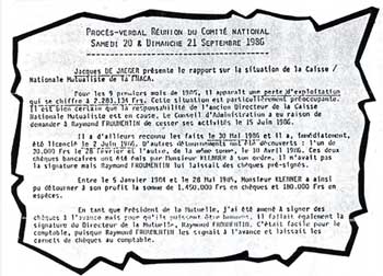 Ces propos confidentiels révélant le piètre état de santé de la caisse nationale mutualiste de la Fnaca, tenus par le président Jacques de Jaeger au comité national des 20 et 21 septembre 1986, il aura donc fallu plus d'un trimestre pour les connaître.