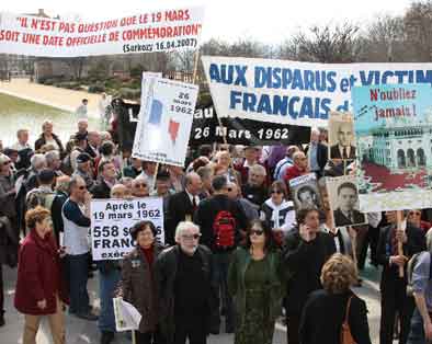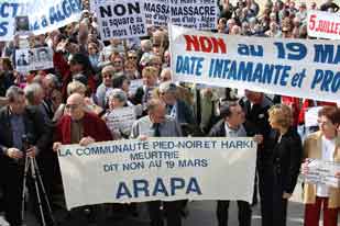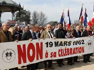 Ainsi, plus d'un millier de personnes ont-elles crié leur refus de voir à Valence l'inauguration prochaine d'un square du 19 mars 1962, et aussi la célébration de la date du 19 mars 1962, celle des accords d'Évian. Leur argument : « Ces accords n'ont pas scellé la fin des atrocités ». Et la perspective de l'inauguration à Valence, le 19 mars prochain, d'un square dédié à cette date, fait resurgir de vieilles douleurs. |