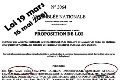 Et bien loin des victimes du " Maroc et de la Tunisie ", sans rapport avec la date de loi nauséabonde du 19 mars du rapporteur Néri.