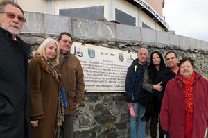 Une partie des membres du collectif devant la stèle des rapatriés sur laquelle est notamment inscrit : " Le souvenir est une renaissance, l'oubli serait un second exil". |