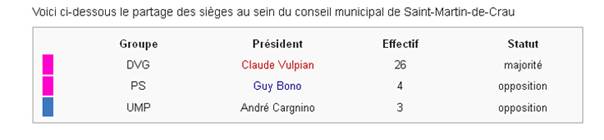 Claude Vulpian, maire de Saint-Martin-de-Crau démissionne du PS après quarante ans de militantisme. Le premier magistrat déclare : Guy Bono, candidat autoproclamé par Paris à la mairie de Saint-Martin-de-Crau, annonce qu'il se présente le 10 octobre 2013  à l'investiture socialiste, finalement il est réelu en 2014.