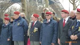 Le piquet d'honneur du 12e régiment de cuirassiers d'Olivet et l’Officier représentant le Gouverneur militaire de Paris ;  nos amis Paras, venus en nombre cette année encore étaient là pour se joindre  à l’hommage.