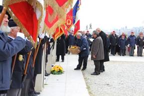 (M Jorant, représentant le Président, accompagné de M le Général Meyer ) ; enfin, la gerbe du Ministre délégué, chargé des Anciens Combattants est déposée par Mr Bono, son chef de Cabinet, accompagné de Mme Antoine, Directrice Générale de l’ONAC-VG, et de Mme Drissi, Conseillère Rapatriés.