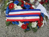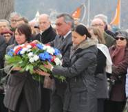 Les participants, parmi lesquels nous décomptions de nombreux et fidèles amis (qui nous pardonneront de ne pas les citer de crainte d’en oublier) sont enfin invités à déposer les fleurs, bleues, blanches et rouges qu’ils ont apportées et se recueillent à leur tour devant cette colonne qui accueille désormais les noms des Victimes civiles.