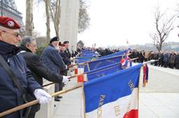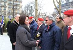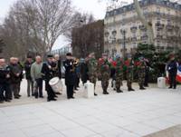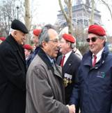 Les Autorités saluent les Familles, le Piquet d’Honneur, les Porte-drapeaux, les responsables associatifs Anciens Combattants et Rapatriés. A noter la forte participation de l’Amicale des Parachutistes en Ile de France, menée par son Président M Mercier, celle de l’U.N.C. représentée par MM Lucien-Louis Bayle, Président de l’UNC 75 et par M le Général Schmitt, Directeur du siège national, celle également du C.N.C. conduite par son Président M Holleindre.