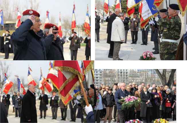 venus de loin, Nancy ou Caen par exemple) qui nous pardonneront de ne pas les citer de crainte d’en oublier, sont enfin invités à déposer les fleurs, bleues, blanches et rouges. Ils s’inclinent à leur tour devant cette colonne qui accueille désormais les noms des Victimes civiles de la guerre d’Algérie.