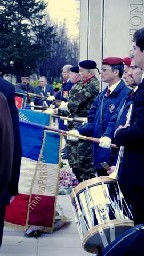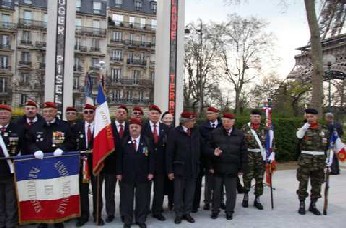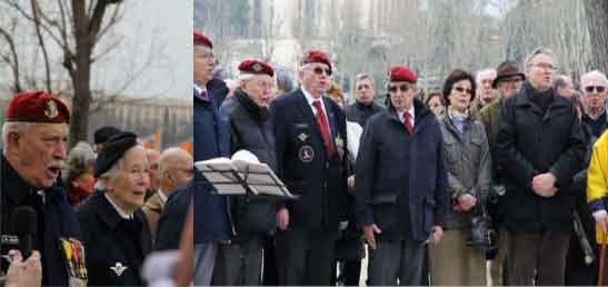 Certes, le vent est encore frais et son souffle perturbera par instants la sonorisation. mais du moins en ce lieu avons-nous la liberté de parole. Sur le côté gauche, les très nombreux Porte-drapeau sont déployés et comblent l’absence de piquet d’honneur (interdit de sortie par le devoir de réserve en période électorale, nous avaient expliqué les Autorités, absentes elles aussi). Sur le côté droit, nos amis Paras entrainés par le Président Mercier, sont là aussi, fidèles au rendez-vous. Enfin, entre les colonnes et en tenue deux Rescapés du Commando Georges