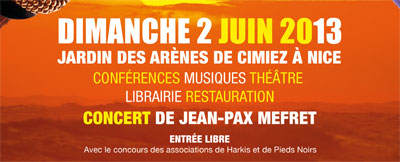 A l’occasion de la manifestation organisée aux arènes de Cimiez « Au soleil des deux rives », J’étais invité par M. Gérald Léger, responsable du CDHA (Centre de documentation historique de l’Algérie) afin de dédicacer mes deux derniers livres « 50 ans…c’était hier l’Algérie française » et « J’accuse De Gaulle »