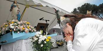 Sur les hauteurs du Mas de Mingue, le rituel va se répéter, dans la dévotion silencieuse comme dans les embrassades hautes en couleur. En convergeant, chaque jeudi de l'Ascension, au pèlerinage de Santa Cruz, des milliers de pieds-noirs célèbrent autant le culte à la Vierge, qu'ils louent d'avoir sauvé Oran du choléra en 1849, que le bonheur de se revoir, parfois après des années sans nouvelles les uns des autres. D'un côté, les messes et le recueillement, de l'autre, la joie démonstrative et les repas tirés du sac ou achetés sur place.