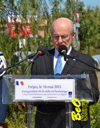 Je souhaite remercier tout particulièrement le Collectif Rassemblement national des Français d'Algérie et leurs amis, qui a, avec de nombreuses associations, organisé la collecte pour cette stèle ; remercier les nombreux donateurs et remercier enfin l'association « La Maison du pied-noir et de ses amis » du don qu'elle fait à la ville de Fréjus, qui est particulièrement heureuse, fière et honorée de l'accepter et de l'accueillir.