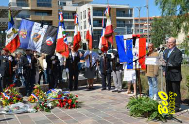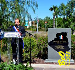 Au nom du Collectif RNFAA (Rassemblement National des Français d'Algérie et leurs Amis ) , de son Secrétaire National , Fred ARTZ, et en tant que Délégué Régional PACA, qu'il me soit permis ,Monsieur le Sénateur Maire de vous remercier très chaleureusement pour avoir accueilli spontanément ce projet ,ainsi que toute votre équipe technique qui a œuvré pour sa réalisation, et de remercier bien entendu tous les généreux Donateurs, qui nous ont fait confiance et sans qui cette belle stèle n'aurait pu voir le jour..
