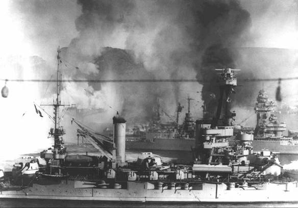 Mers-el-Kébir est un port militaire de France important. Les croiseurs de bataille La Bretagne et La Provence s'y trouvent, ainsi qu'un porte-hydravions, six contre-torpilleurs... L'escadre anglaise se présente ainsi le 3 Juillet 1940 face au port de Mers-el-Kébir et remet son ultimatum à r amiral français