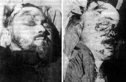 La ville résonne des coups de matraques sur les rideaux métalliques, sur les portes et les fenêtres, des cris sauvages, des injures et des imprécations des assassins, des supplications et des hurlements des victimes.