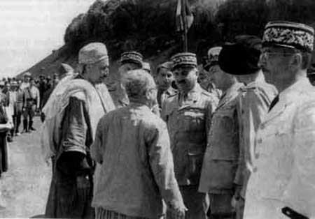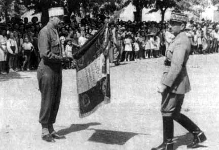 Fin mai à Sétif, le Général Duval salue l'étendard du 7ème RTA de retour de sa glorieuse épopée.