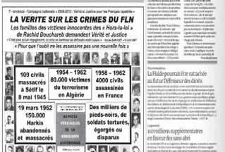 représentants des rapatriés. Dans la même édition, le journal publie une double page Contre-enquête intitulée "France-Algérie : peut-on réconcilier les mémoires ?"