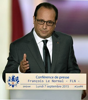 - François Hollande se prononcera sur l'extension à la Syrie des frappes contre l'organisation Etat islamique lundi 14 septembre 2015.