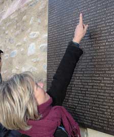 Ils se sont avancés vers lui. Ils ont marché à pas hésitants vers ce nom, ce seul nom dont ils n'osent croire qu'ils vont enfin le trouver. Le retrouver, et le lire dix fois, mille fois, pour être bien sûr de sa présence. Ils ont marché droit vers lui, en une sorte d'immémoriel rendez-vous, comme s'ils connaissaient sa place, et savaient depuis toujours que l'instant qu'ils étaient en train de vivre n'était que l'ultime reprise d'un songe enfin matérialisé. Tous, ils ont eu un geste étrange et beau. Sans un mot, chacun d'eux a levé la main vers ce nom tant pleuré et tant cherché. D'abord hésitants, les doigts ont effleuré le froid relief. Puis ils se sont appesantis sur la tendre rugosité. Le contact s'est fait pression, puis message. Savaient-ils en toute conscience ce qu'ils étaient en train de faire ? Savaient-ils qu'ils étaient, pour la première fois, en train directement de toucher ce corps de leur parent arraché à l'existence ?