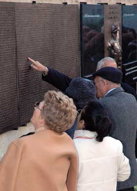 Quarante-cinq années de désert et de solitude se terminent aujourd'hui. Quarante-cinq années de douleur et quelquefois de honte. Honte de ne pas être cru, honte d'avoir survécu à l'horreur sans nom d'une disparition. Ils n'ont pas encore vu les plaques alignées. Ils les devinent cachées sous la blancheur de ces derniers voiles qui retiennent encore 2619 noms. Ces noms qui, tout à l'heure, vont enfin pouvoir prendre leur envol vers ce ciel terrestre qui les a toujours ignorés. 2619 cris. 2619 séries de lettres qui vont rendre vie à ceux qui ne devaient pas la perdre. Les plaques! Où sont les plaques ? Mais auparavant il faut écouter les voix, il faut entendre les paroles de ces hommes et de ces femmes. De ceux qui ont tout mis en jeu, qui ont tout risqué de leur existence pour mener à bien cette œuvre dont nul peut-être ne mesure encore la véritable portée. Comment exprimer leur courage et l'étendue de leur désintéressement? Comment nommer cette foi qui les anime, sinon par ce mot magnifique qui, le mieux, définit la grandeur de l'humanité : l'honneur. On peut mourir pour lui, certes, mais il est tout autant grandiose de vivre humblement pour le défendre, et d'agir inlassablement et discrètement pour le servir. |