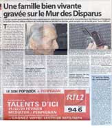 Sa colère, Yvan la partage avec sa mère et sa jeune soeur. A sa soeur aînée, traumatisée par les violences subies en Algérie, ils ont préféré taire jusqu'à l'existence de ce mur... "Nous avons écrit une lettre à Jean-Paul Alduy, dans laquelle nous lui demandons comment, en sa qualité d'officier d'état civil, il n'a effectué aucune recherche afin de contrôler l'exactitude des informations qui lui étaient fournies. Quelle crédibilité accorder, du coup, à cette liste des Disparus ? Et bien évidemment, nous avons exigé que notre nom soit effacé de ce monument dont la récupération politique par les nostalgiques d'un passé peu glorieux pour la France est évidente." Liberté Donnat, 90 ans, viendra défendre la mémoire de son mari