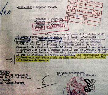 Une note de la direction des armées révèle la présence, dans un centre de détention du FLN, d'une quarantaine d'Européens séquestrés jouant le rôle de donneurs de sang".