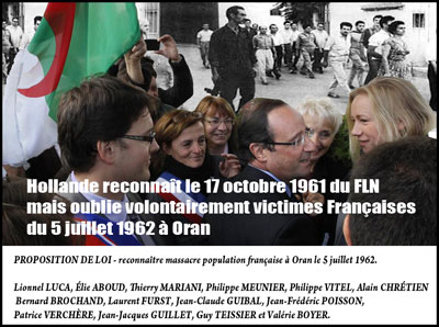 La République française reconnaît le massacre de la population française du 5 juillet 1962 à Oran. |