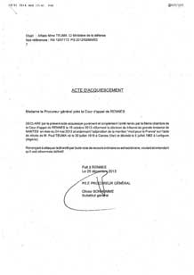 En date du 26 décembre 2013 suite au jugement de la Cour d'Appel de Rennes du 15 octobre 2013, le Parquet confirme la condamnation du Ministère de la Défense et ordonne l'adjonction de la mention « Mort pour la France »sur l'acte de décès de M. Paul, Hubert, Marie TEUMA né le 30 juillet 1918 à Carcès (Var) décédé le 5 juillet 1962 à Lartigues (Algérie).