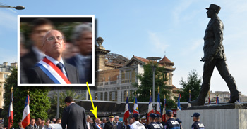 Eric Ciotti en transe devant la statue du félon De gaulle le 18 juin 2011 érigée par Christian Estrosi |