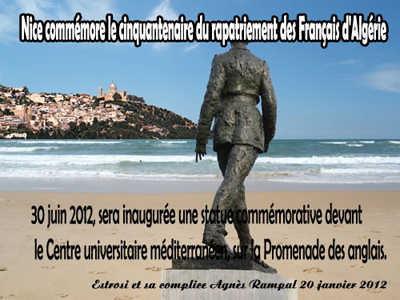 Le vendredi 20 janvier 2012 à 14 heures 30 à Villa Masséna de Nice avait lieu la présentation du programme des manifestations qui seront organisées à Nice tout au long de l’année 2012, dans le cadre de la Commémoration du Cinquantenaire du rapatriement des Français d’Algérie.