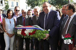 À l'issue de cette réception, Patrick Mennucci et les parlementaires algériens sont allés ensemble déposer une gerbe au pied de la plaque commémorative de la répression meurtrière des manifestations nationalistes à Sétif, Guelma et Kherrata, le 8 mai 1945. |