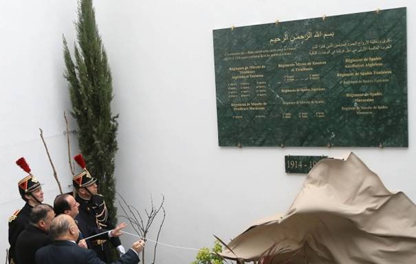 Il a dévoilé deux plaques recensant les unités musulmanes engagées dans les deux conflits mondiaux, aux côtés desquelles sera prochainement placée une borne interactive avec le nom des soldats musulmans tombés sur le champ de bataille. Quelque 600 000 soldats des troupes coloniales participèrent à la Grande guerre, de 1914 à 1918 et environ 70 000 musulmans y ont perdu la vie, selon une estimation du ministère de la Défense en 2010.