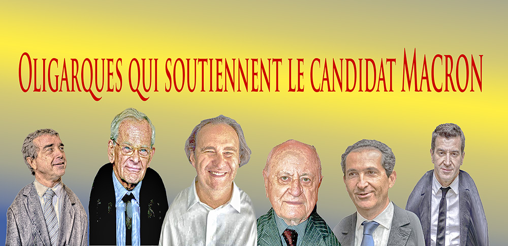 | Les oligarques qui soutiennent Emmanuel Hollande : Arnaud Lagardère, Claude Perdriel, Xavier Niel, Pierre Bergé, Patrick Drahi, Matthieu Pigasse. |