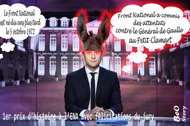 L’intervieweur Gilles Bouleau lui fait alors remarquer que "les attentats contre le général de Gaulle, c’était l’OAS, c’était pas le Front national qui n’existait pas dans ces années-là". Emmanuel Macron répond : - Emmanuel Macron : Non. Simplement, le commanditaire du Petit-Clamart, son fils, il est dans l’opposition Front national à monsieur Estrosi à la région [Paca]. - Gilles Bouleau : Il n’est pas responsable des actes de ses parents, monsieur. - Emmanuel Macron : Non, mais avec des positions, y compris d’ailleurs qui sont prises par des dirigeants actuels du Front national depuis que madame Le Pen lui a laissé ses responsabilités, par un dirigeant qui a tenu des propos graves sur notre histoire, sur notre vie politique. L'attentat évoqué par Emmanuel Macron au petit Clamart en 1962 était l'oeuvre de l'OAS et non du Front national, parti fondé dix ans après les faits.