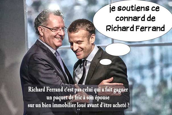 Et l’emploi de son propre fils en tant qu’assistant parlementaire, comme celui de Fillon ? Simple job d’été pour quelque 8 000 euros. Pourquoi lui ? Réponse qui ne va pas lui faire que des amis parmi ses électeurs : « Je vous invite à aller faire un tour en Bretagne. Ce n’est pas simple de trouver un jeune, volontaire pour travailler cinq mois qui sait lire et écrire correctement. » A part le fils Ferrand, les jeunes, là-bas, savent à peine lire et écrire, les Bretons sont des demeurés. Là, c’est Macron qui est son modèle, en 2014 ce dernier traitait, lui, les ouvrières des abattoirs bretons Gad d’« illettrées ».