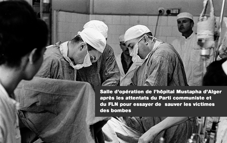 Un petit garçon sur son lit d'hôpital, les deux jambes sectionnées, il s’appelle Robert Girard, il avait 13 ans, le jour de l'attentat contre le bus scolaire de Diar Es-Saâda la « cité du bonheur » où une bombe explose le lundi 12 novembre 1956 par l’équipe du parti communiste de Fernand Iveton la cellule de la Redoute le mercredi 14 novembre 1956 le traître à la patrie et terroriste FLN Fernand Iveton dépose une bombe dans le vestiaire de l’usine à Gaz du Hamma près du clos Salembier.