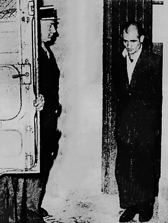 Fernand Iveton à la sortie du Tribunal militaire de la rue Cavaignac à Alger le samedi 24 novembre 1956