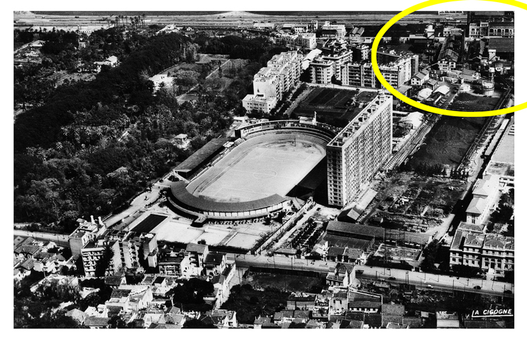 Usine à gaz de l’EGA du Hamma dans le quartier du Ruisseau à Alger lieu de l’attentat par une bombe déposée par le terroriste du PCA-FLN Fernand Iveton un ouvrier de l’usine en haut de l’image dans un milieu dense « une bombe pour faire semblant » heureusement découverte avant son explosion.