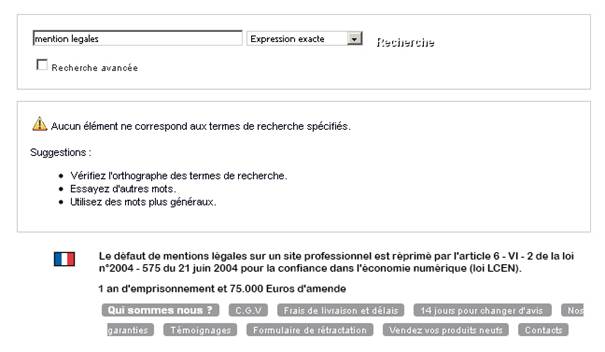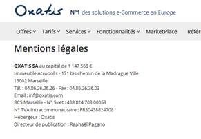 Le comble pour le spécialiste Oxatis de e-commerce aucune mention légale sur le site internet L'Electromenager, ni adresse !