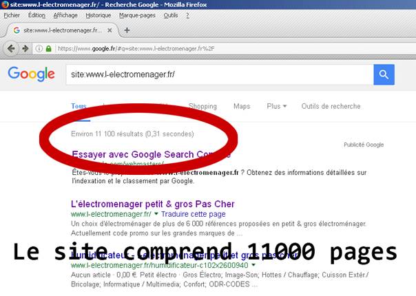 Le créateur du site internet à fait un excellent travail 11 100 pages indexées sur le moteur de recherche Google !
