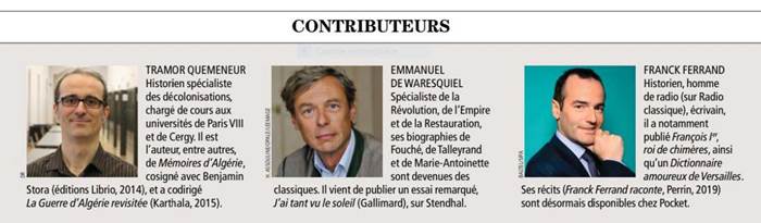 TRAMOR QUEMENEUR Historien spécialiste des décolonisations, chargé de cours aux universités de Paris VIII et de Cergy. Il est l'auteur, entre autres, de Mémoires d'Algérie, cosigné avec Benjamin Stora (éditions Librio, 2014), et a codirigé La Guerre d'Algérie revisitée (Karthala, 2015).