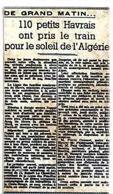 Mes parents faisaient partie de la Ligue des familles nombreuses (à l'époque 3 enfants), c'est comme cela que nous sommes parties, Monique ma sœur cadette, Irène l'orpheline, moi, 107 enfants du Havre, et bien d'autres, venus de villes « fragilisées », embarqués sur le « Lamoricière » et accueillis par différentes familles d'Alger...
