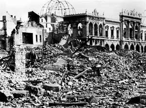 Peu de temps après notre arrivée, Maman nous a emmenées dans les quartiers les plus touchés par les bombes. De l'Hôtel de ville jusqu'à la mer, ce n'étaient que décombres... Les gravats s'amoncelaient en tas serrés à la place des maisons. Quelle désolation !