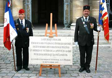 Ce 25 septembre 2008 a été l’occasion d’un nouvel hommage de la France à l’égard des Harkis et nous le saluons tous, mais quand verra-t-on la vérité enfin éclater et cette promesse tenue ? Le 5 décembre prochain, journée d’hommage national aux victimes françaises militaires et civiles de la guerre d’Algérie ?